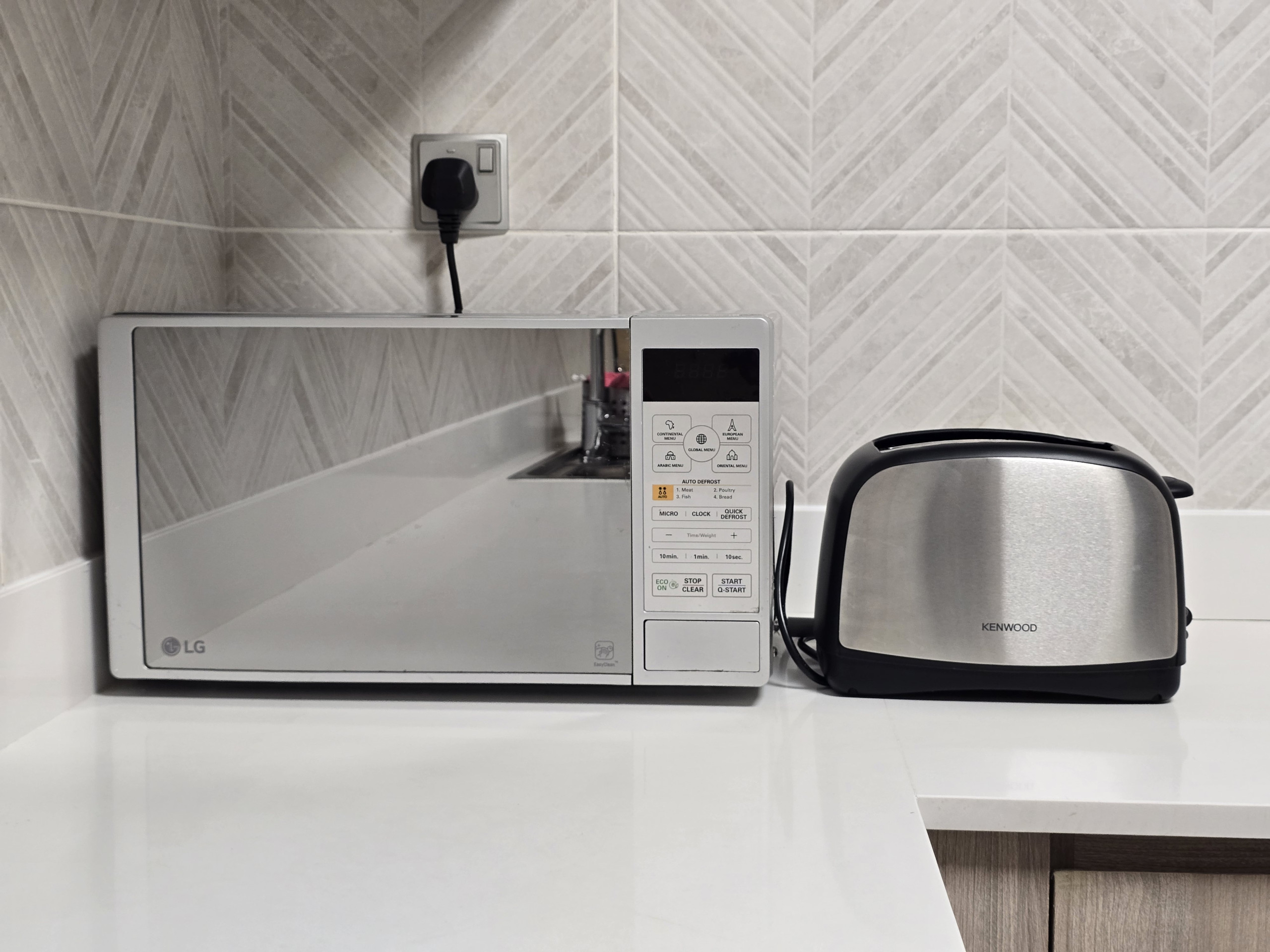 In the gas kitchen, refrigerator, microwave, oven, freezer, dishes/cutlery, kitchen utensils, toaster and kettle are provided.